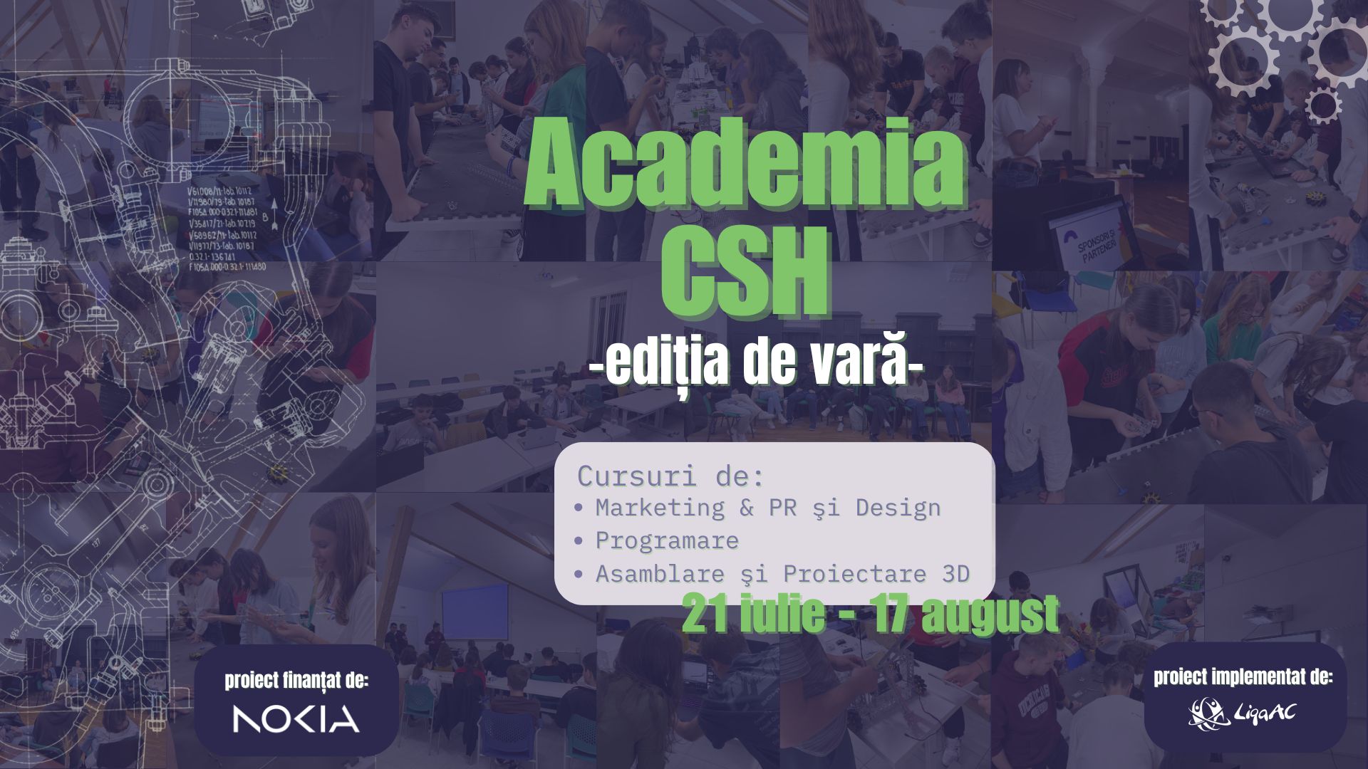 Timișoara, iulie 2025 - Echipa de robotică CSH a Colegiul Național Pedagogic „Carmen Sylva” din Timișoara, organizează în perioada 21 iulie – 17 august 2025 cea de-a șasea ediție a proiectului educațional Academia CSH, din acest an parte a programului NextGen Robotics, finanțat de Nokia Networks și implementat de Liga AC.